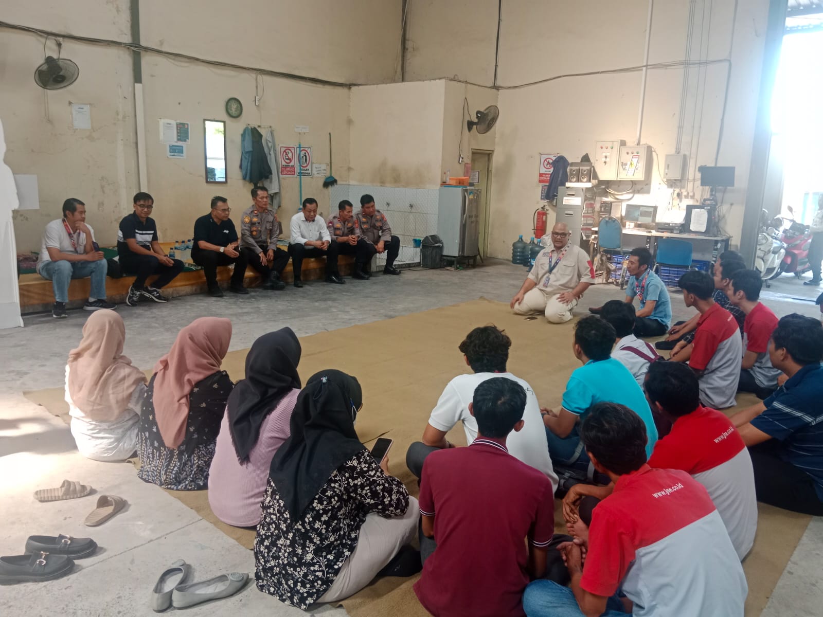 POLRES CIREBON KOTA,- Bhabinkamtibmas kelurahan Pegambiran Polsek lemah wungkuk Polres Cirebon kota Polda Jabar Bripka Jaenal SH sambangi pekerja di kawasan industri, memberikan Binluh serta mengajak peduli kamtibmas lingkungan sekitar, Rabu (23/10/2024).