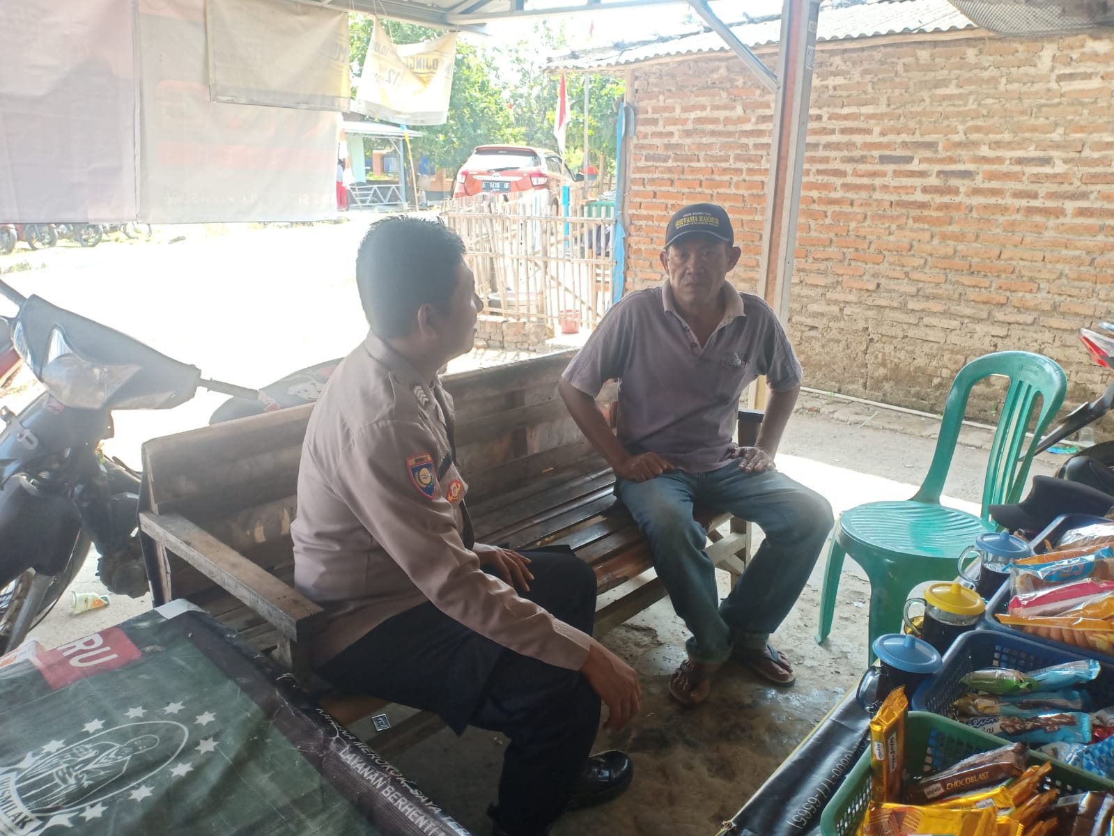 Indramayu,— Bhabinkamtibmas Polsek Gabuswetan jajaran Polres Indramayu Polda Jabar Bripka Zaenal Abidin terus melakukan sambang desa binaan dan tak henti-hentinya mengingatkan masyarakat untuk waspada terhadap gangguan kamtibmas, Jum’at (18/8/2023).