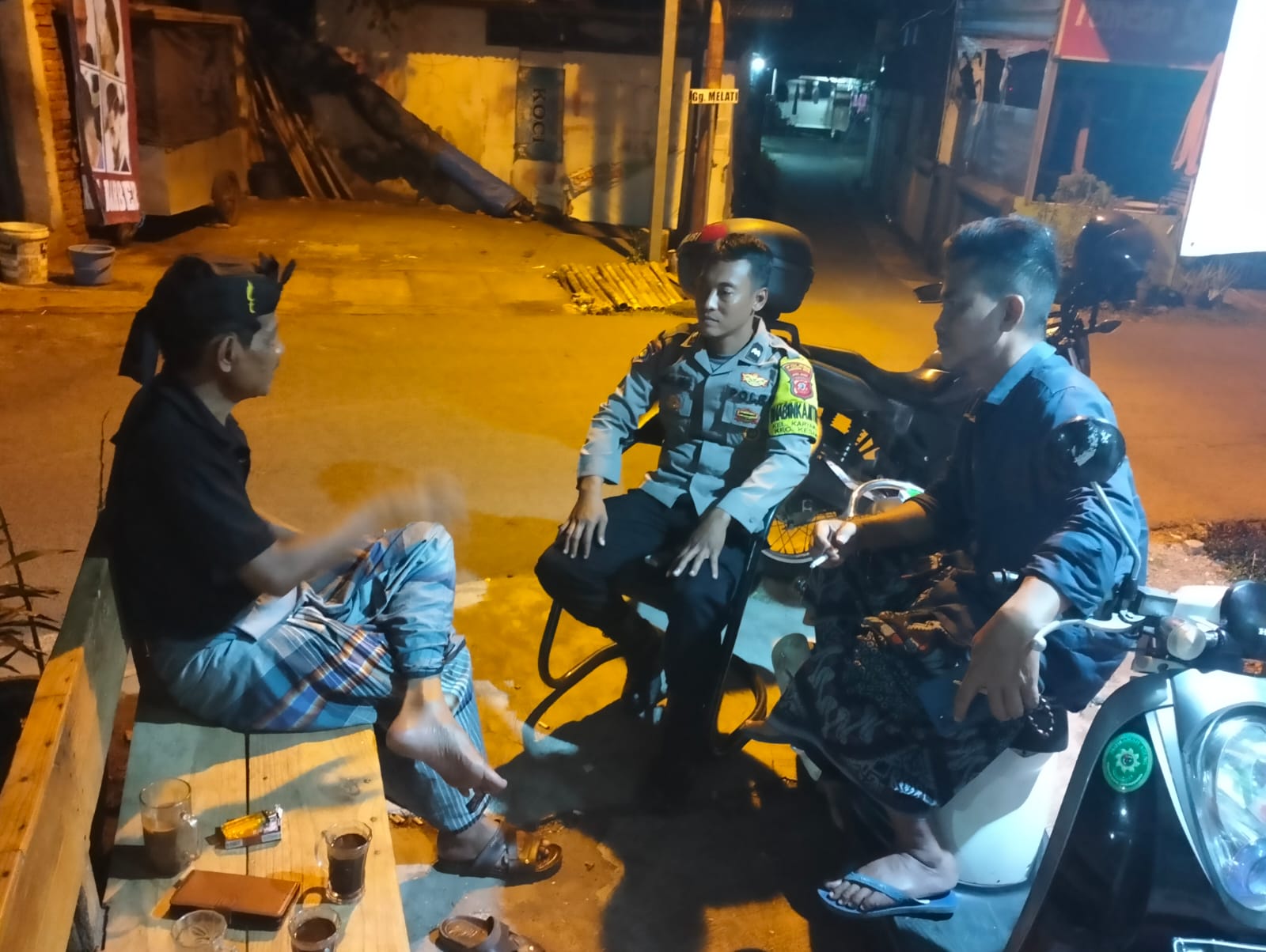 Bhabinkamtibmas Kelurahan karya Mulya Aipda Eko , menyatu bersama warga RW 09 harapan mulyad melalui sambang patroli warga binaan ajak jaga kerukunan pasca Pemilu 2024 , Kamis malam (04/07/2024).