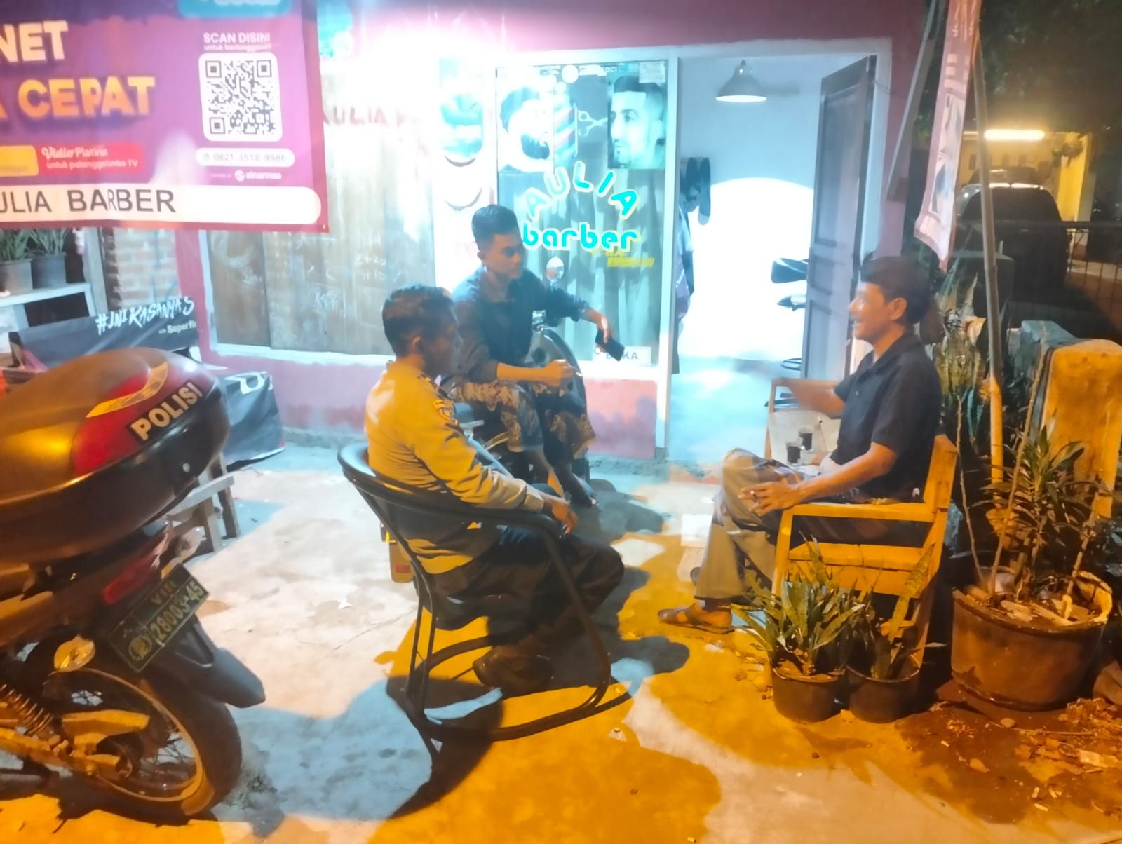 Bhabinkamtibmas Kelurahan karya Mulya Aipda Eko , menyatu bersama warga RW 09 harapan mulyad melalui sambang patroli warga binaan ajak jaga kerukunan pasca Pemilu 2024 , Kamis malam (04/07/2024).