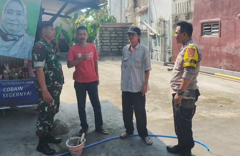 Cirebon Kota _ Bhabinkamtibmas Kelurahan Kebon Baru Polsek Utbar Polres Cirebon Kota Bripka Solih bersama Babinsa Sertu Yosep Sambang warga melalui Door To Door System (DDS) diwilayah binaan Jalan Samadikun Gang Empang I RT. 07 RW. 03 Kelurahan Kebon Baru Kecamatan Kejaksan Cirebon Kota, Sabtu (12/08/2023)