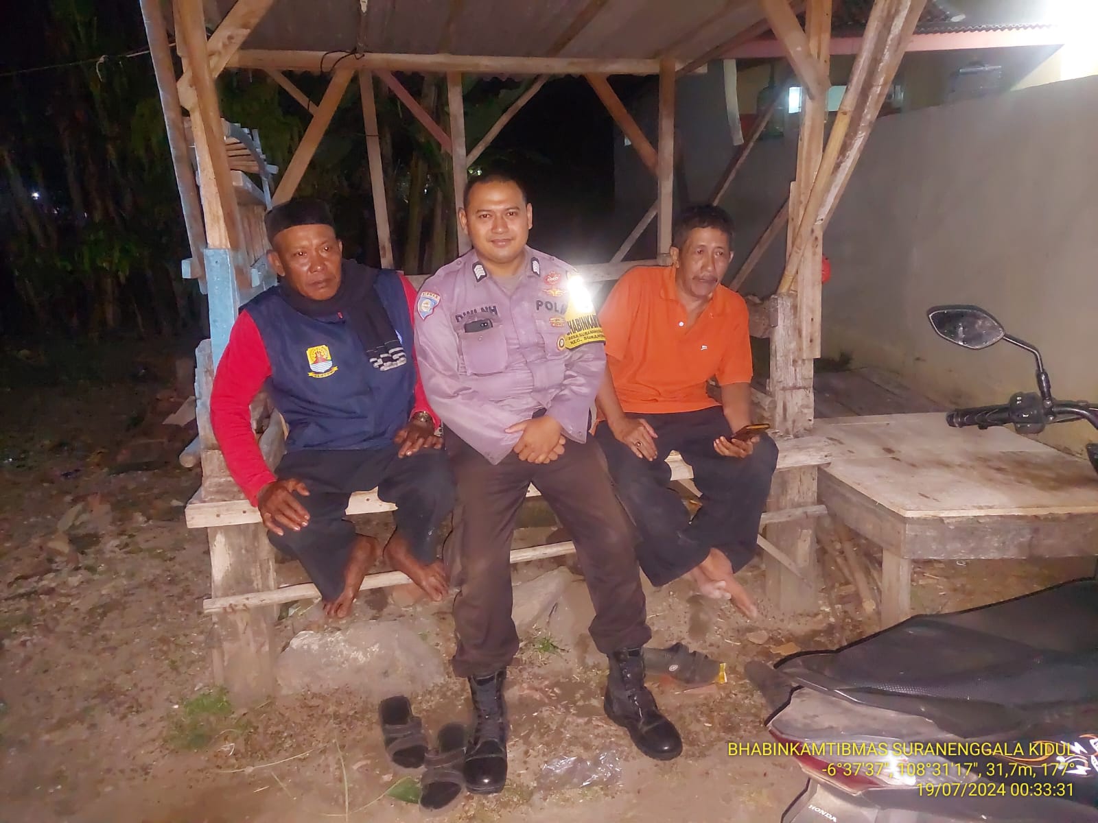 POLRES CIREBON KOTA -, Bripka Dede selaku anggota Bhabinkamtibmas Kelurahan kebon baru aktif sambang sekaligus kontrol ke wilayah binaan dan warga tanda barat Kelurahan Kesenden Kecamatan Kejaksan Cirebon Kota. Jumat malam (19/07/2024)