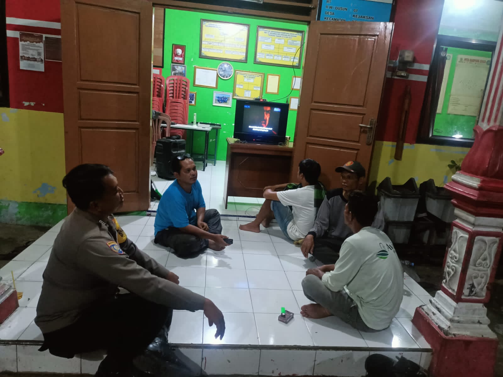 Jajaran Bhabinkamtibmas Polsek Utbar Polres Cirebon Kota Polda Jabar melaksanakan sambang patroli wilayah binaan, Seperti yang di lakukan Bripka Pendi Bhabinkamtbmas kelurahan kejaksan bersama Babinsa kepada warga saat jaga malam di poskamling RW 01 Kebon kelapa kelurahan kejaksaan, Jumat malam (15/11/2024).