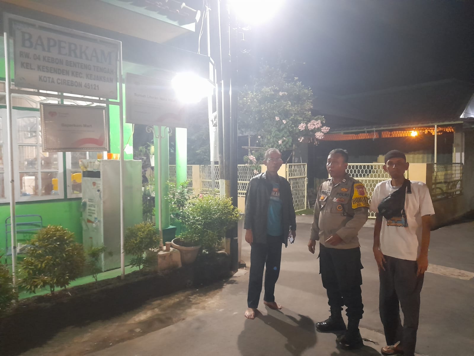 POLRES CIREBON KOTA -, Aiptu Imam Safei selaku anggota Bhabinkamtibmas Kelurahan Kesenden Polsek utbar Polres Cirebon kota bersama Babinsa sambang patroli wilayah binaan menyambangi warga jaga malam di baperkam RW 04 Samadikun Kelurahan Kesenden Kecamatan Kejaksan Cirebon, Minggu malam (29/09/2024).