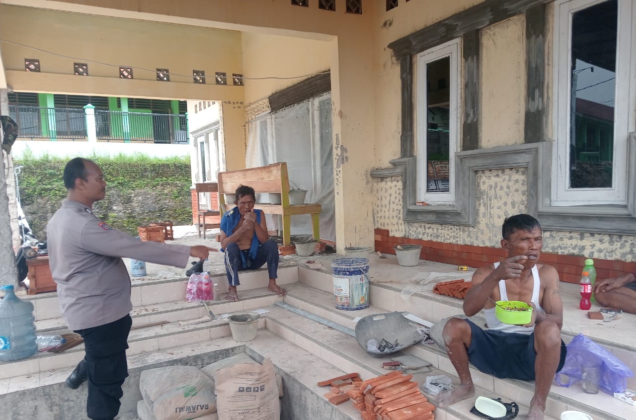 POLRES CIREBON,- Personil Polsek Mundu, Aiptu Kadman bhabinkamtibmas Polsek mundu Polres Cirebon kota desa Sinarancang sambangi warga desa Sinarancang, Kecamatan Mundu wilkum Polres Cirebon dengan membantu mengangkat material bangunan sekaligus menghimbau Kamtibmas warga Senin (10/06/2024)
