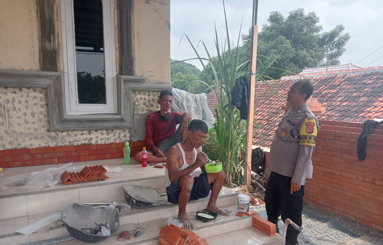 POLRES CIREBON,- Personil Polsek Mundu, Aiptu Kadman bhabinkamtibmas Polsek mundu Polres Cirebon kota desa Sinarancang sambangi warga desa Sinarancang, Kecamatan Mundu wilkum Polres Cirebon dengan membantu mengangkat material bangunan sekaligus menghimbau Kamtibmas warga Senin (10/06/2024)