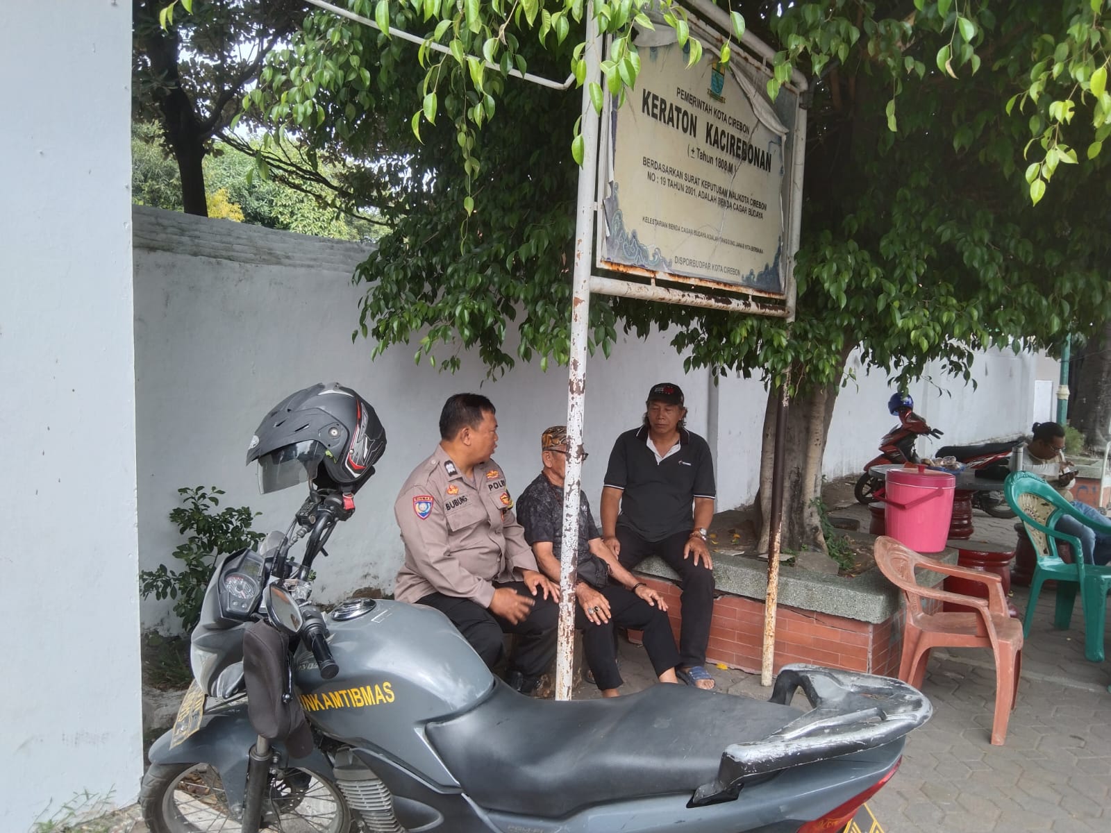 POLRES CIREBON KOTA,- Bhabinkamtibmas kelurahan Pulasaren Polsek Seltim Polres Cirebon kota Polda Jabar Aiptu Bubung Ramdhani bersama Babinsa serap informasi, sambangi Tokoh masyarakat dan warga di RW 07 kacirebonan kelurahan pulasaren, ajak peduli kamtibmas lingkungan, Sabtu (03/08/2024).