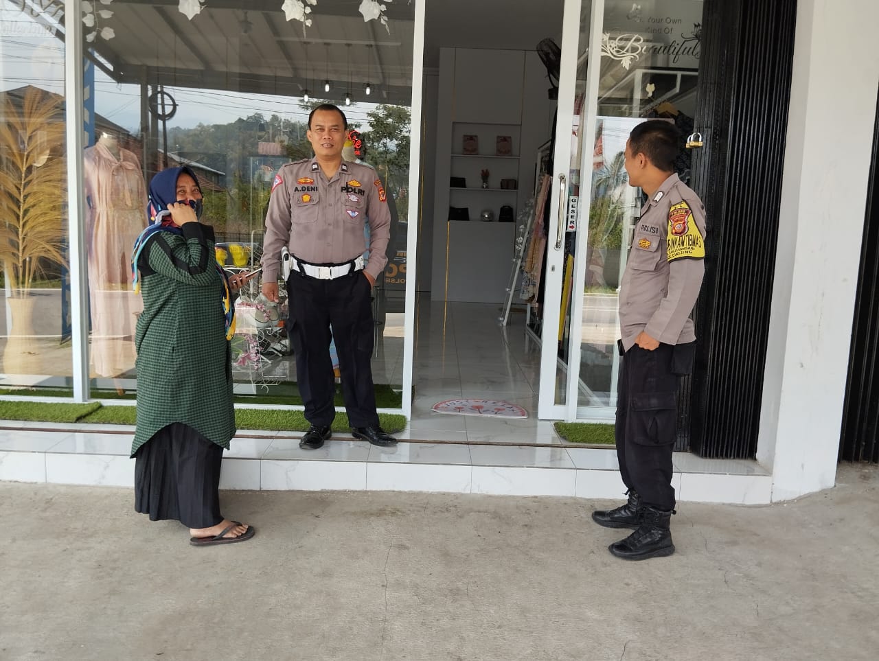 Majalengka – Bentuk upaya menjalin komunikasi dengan masyarakat, Personil Polsek Cikijing Polres Majalengka Polda Jabar Aiptu Ade Deni H dan Bhabinkamtibmas Bripka Achmad Supriyono melakukan patroli dan menyambangi salah satu boutique di Desa Kasturi, kecamatan Cikijing, Kabupaten Majalengka dan menyampaikan imbauan Kamtibmas kepada pemilik toko tersebut, Minggu (03/09/2023).