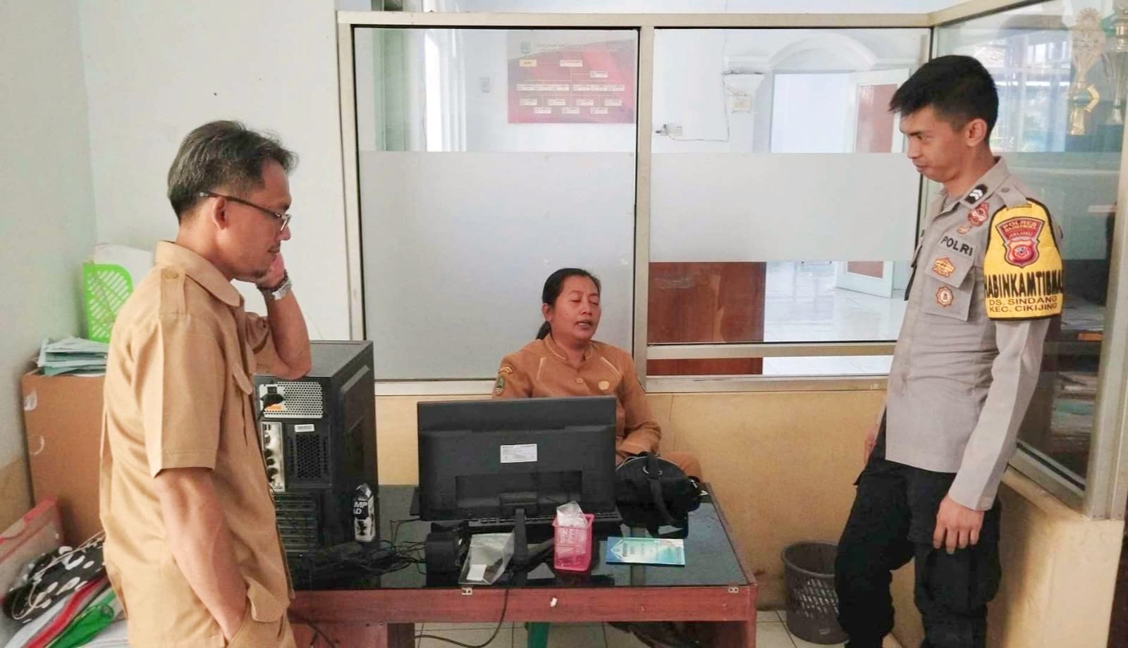 Majalengka – Dalam rangka meningkatkan sinergitas Aparat Kepolisian dengan Pemerintahan Desa, Polsek Cikijing Polres Majalengka Polda Jabar melalui Bhabinkamtibmas Briptu Asep Indra rutin menyambangi Kantor Desa untuk menjalin silaturahmi, berkomunikasi dan bekerja sama guna pemeliharaan keamanan dan ketertiban masyarakat, Jum’at (17/11/2023).