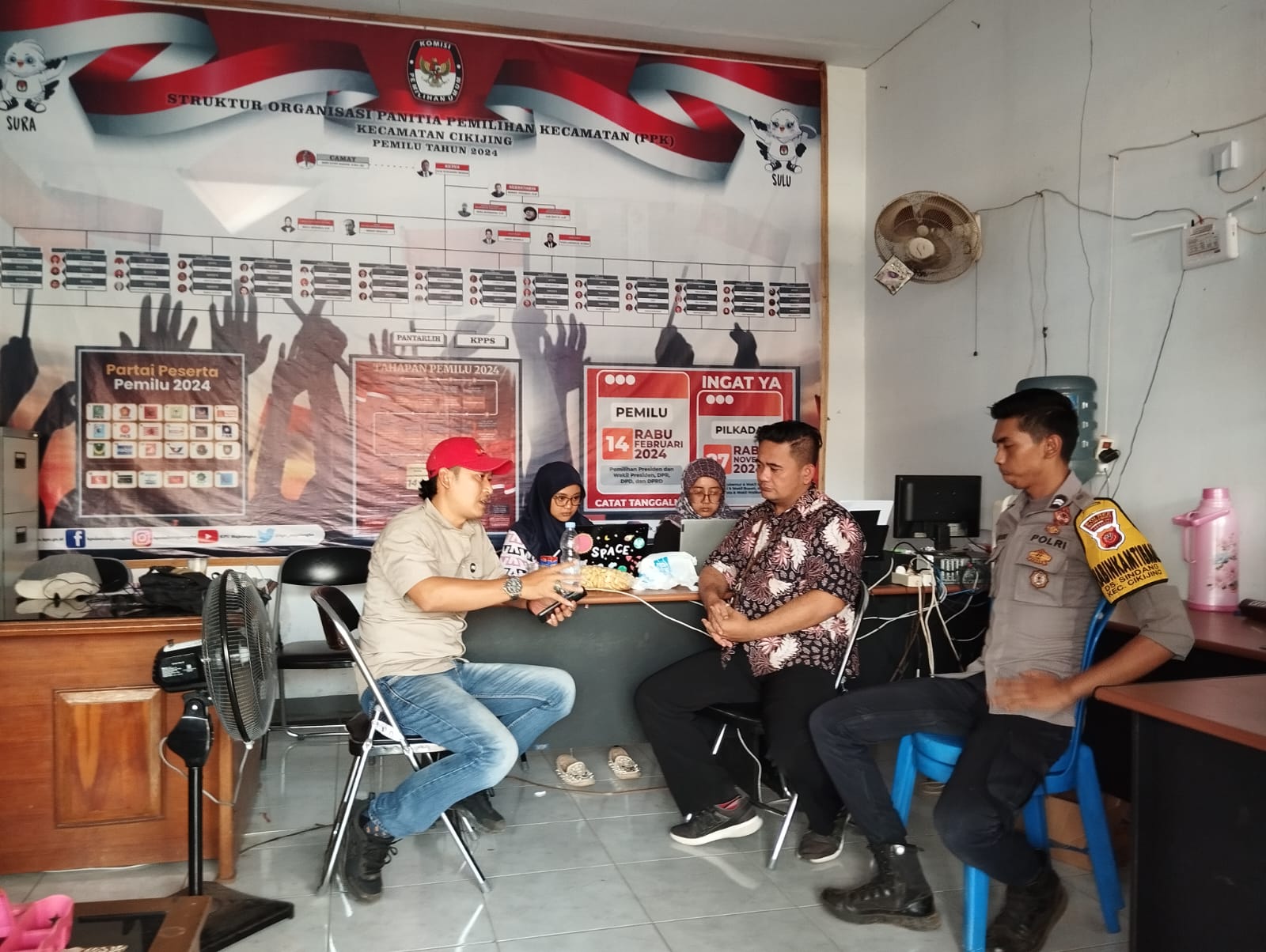 Sambangi Kantor PPK, Personil Polsek Cikijing Ajak Sukseskan Pilkada yang Aman dan Damai