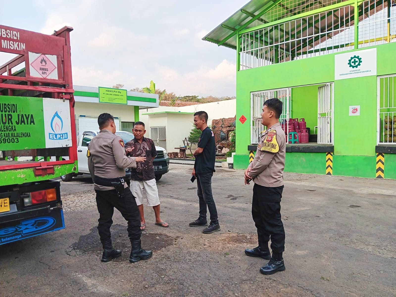 Majalengka – Sesuai arahan dari Kapolres Majalengka Polda Jabar AKBP Indra Novianto,S.I.K.,M.Si.,CPHR., melalui Kapolsek Cikijing Polres Majalengka Polda Jabar AKP Rudy Djunardi M, S.H., M.H. didampingi Bhabinkamtibmas Bripka Harry menyambangi Pangkalan Gas LPG di Blok Sukaraos Desa Sukamukti, Kecamatan Cikijing, Kabupaten Majalengka, Minggu (15/10/2023).
