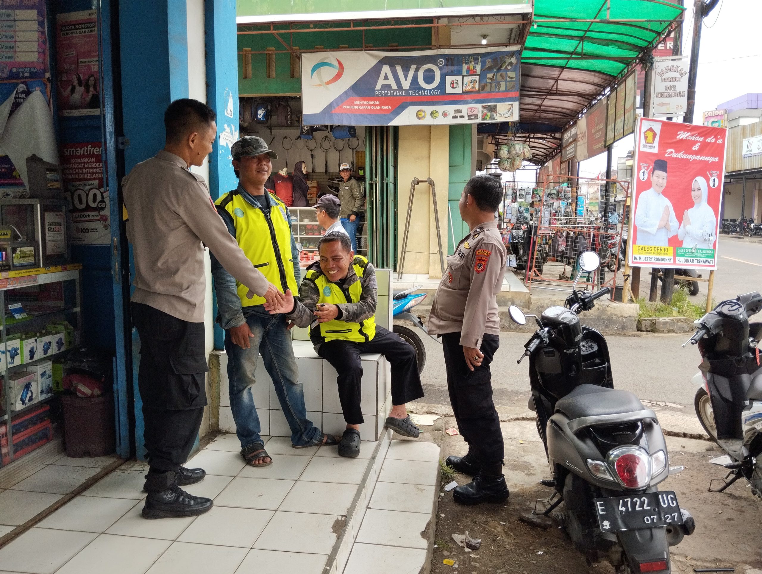 Majalengka – Banyak cara yang dilakukan jajaran Kepolisian dalam menjaga keamanan dan ketertiban masyarakat, salah satu caranya adalah dengan patroli dialogis dan patroli sambang. Seperti yang dilaksanakan oleh Ps. Panit Samapta l Polsek Cikijing Polres Majalengka Polda Jabar Aipda Eman Subagja dan Bhabinkamtibmas Bripka Achmad Supriyono kepada Ojek Pangkalan (Opang) di pangkalan ojek Desa Sukamukti Kecamatan Cikijing, Kabupaten Majalengka, Rabu (31/01/2024).
