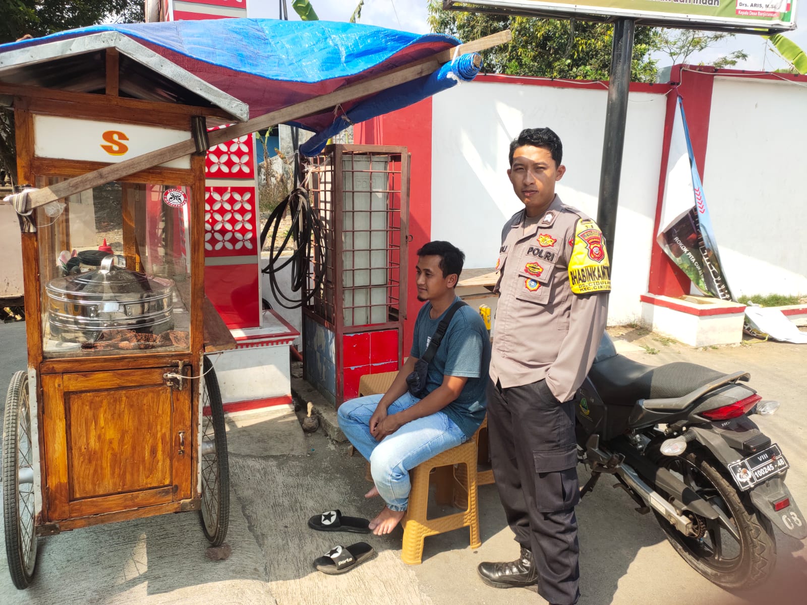 Dalam kegiatan tersebut, anggota Bhabinkamtibmas menyempatkan diri untuk mendatangi pedagang siomay tersebut sambil berkomunikasi dan saling memberikan informasi mengenai seputar permasalahan yang terjadi dan juga memberikan imbauan dan pesan-pesan kamtibmas disela-sela pembicaraan mereka.
