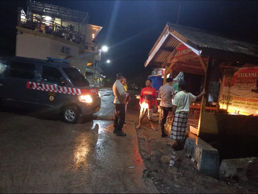 Indramayu, — Polsek Bongas jajaran Polres Indramayu Polda Jabar melaksanakan patroli malam dan mengecek keaktifan Satkamling Presisi Wiralodra, di Wilayah Kecamatan Bongas, Kabupaten Indramayu, Sabtu (22/6/2024).