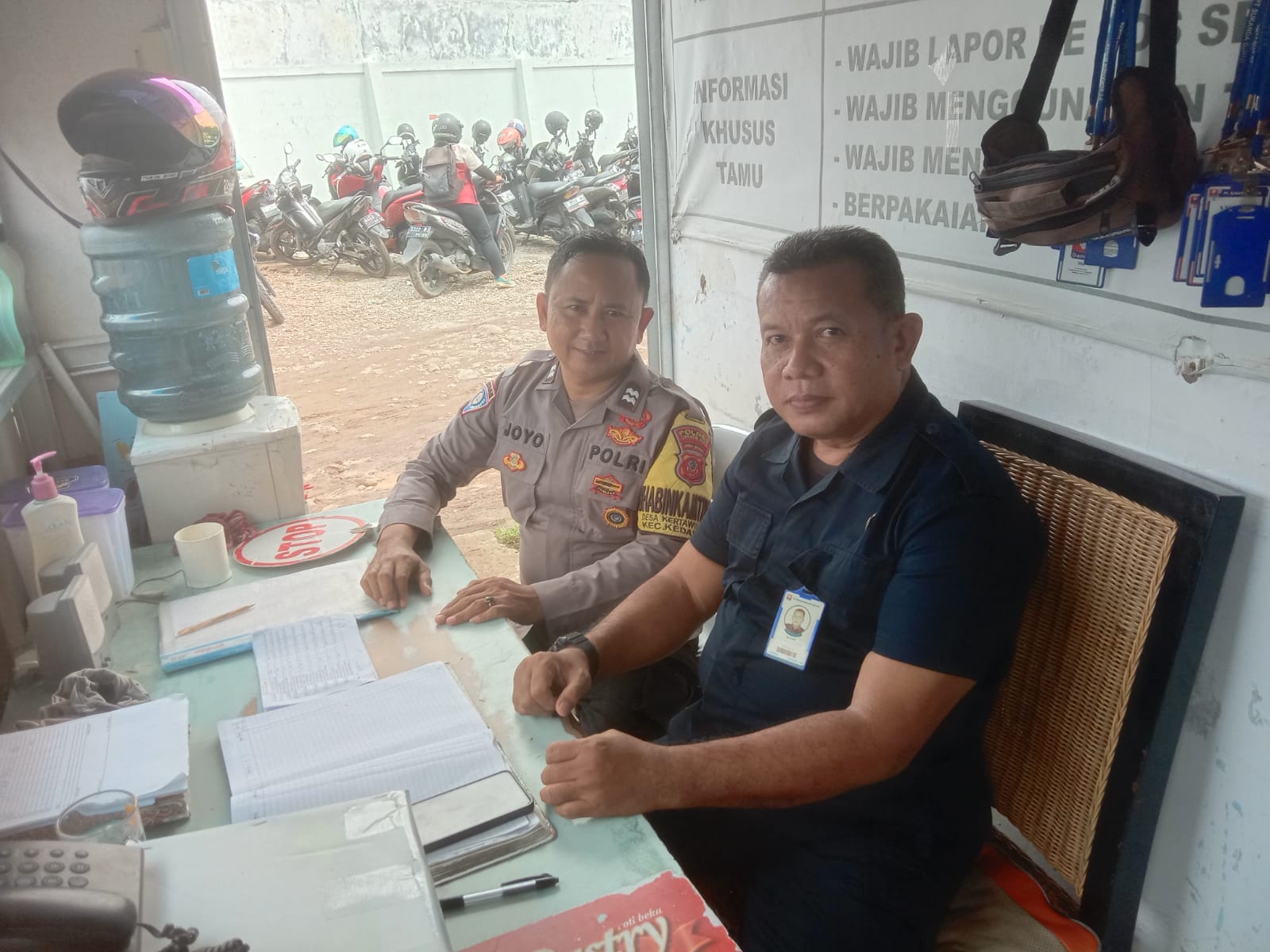 Bhabinkamtibmas Desa kertawinangun Aiptu joyo jalin kemitraan menyambangi petugas satpam perumahan kertwinangun indah kertawinangun Kec.Kedawung Wilkum Polres Cirebon Kota. Sabtu (18/05/2024).