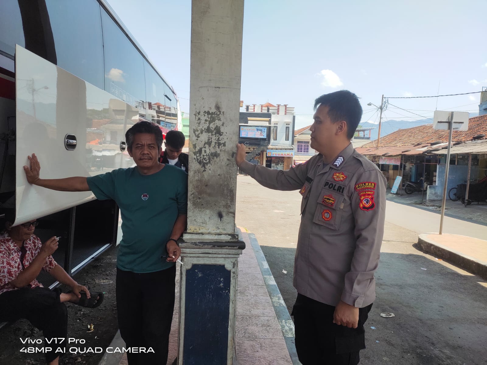 Sambangi Terminal, Bhabinkamtibmas Polsek Cikijing Beri Imbauan Kamtibmas Kepada Karyawan dan Sopir Bus Primajasa mjl