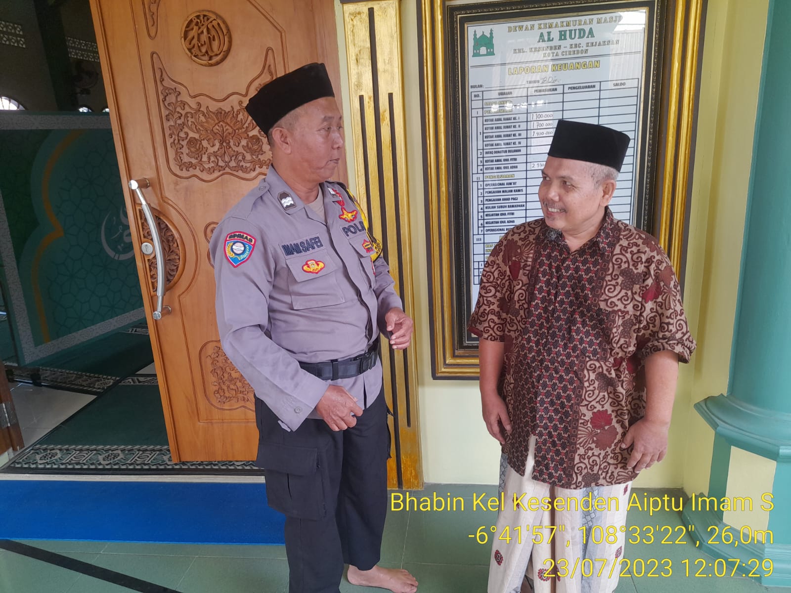Lanjut Kapolsek Utbar “Selaku Bhabinkamtibmas Kelurahan Kesenden Polsek Utbar Aiptu Imam saat menyambangi Ustad mahmudin selaku DKM Masjid insulla di jalan samadikun selatan Kelurahan kesenden kota Cirebon, selepas sholat dhuhur berjamaah dengan bercengkrama, Upaya tingkatkan komunikasi dalam berpartisipasi jaga kondusifitas lingkungan”ujar Kapolsek Utbar AKP Iwan Gunawan SH