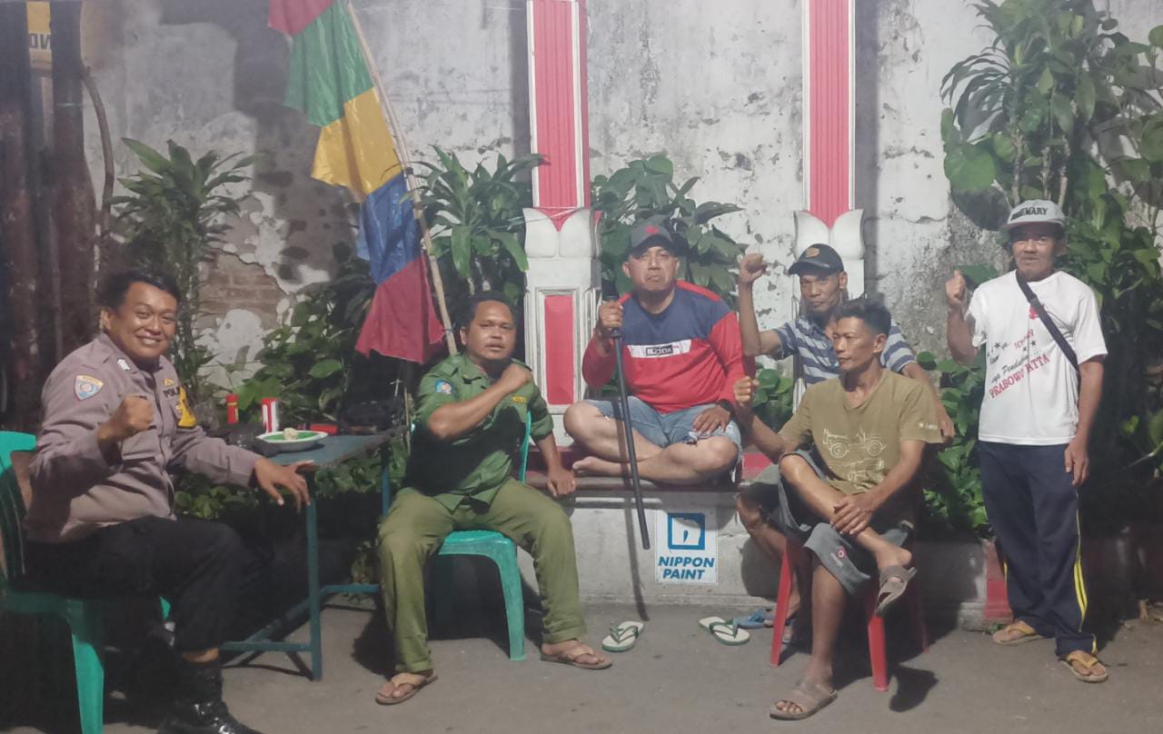 Anggota Bhabinkamtibmas Kelurahan Kejaksan Bripka Pendy mengajak warga untuk menggiatkan Siskamling di Lingkungan RW 01 Kegiren Kelurahan Kejaksan Kecamatan Kejaksan Cirebon kota Selasa dinihari (08/08/2023)