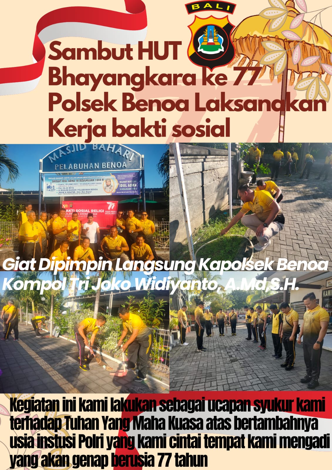 Demikian juga Polsek Benoa Polresta Denpasar ikut aktif mengambil bagian menyambut HUT Bhayangkara ke 77 dengan cara melakukan Pengobatan gratis kemarin Jumat tgl (16/6) dan dilanjutkan dengan kerja bakti sosial di tempat tempat ibadah yang ada di kawasan pelabuhan Benoa.