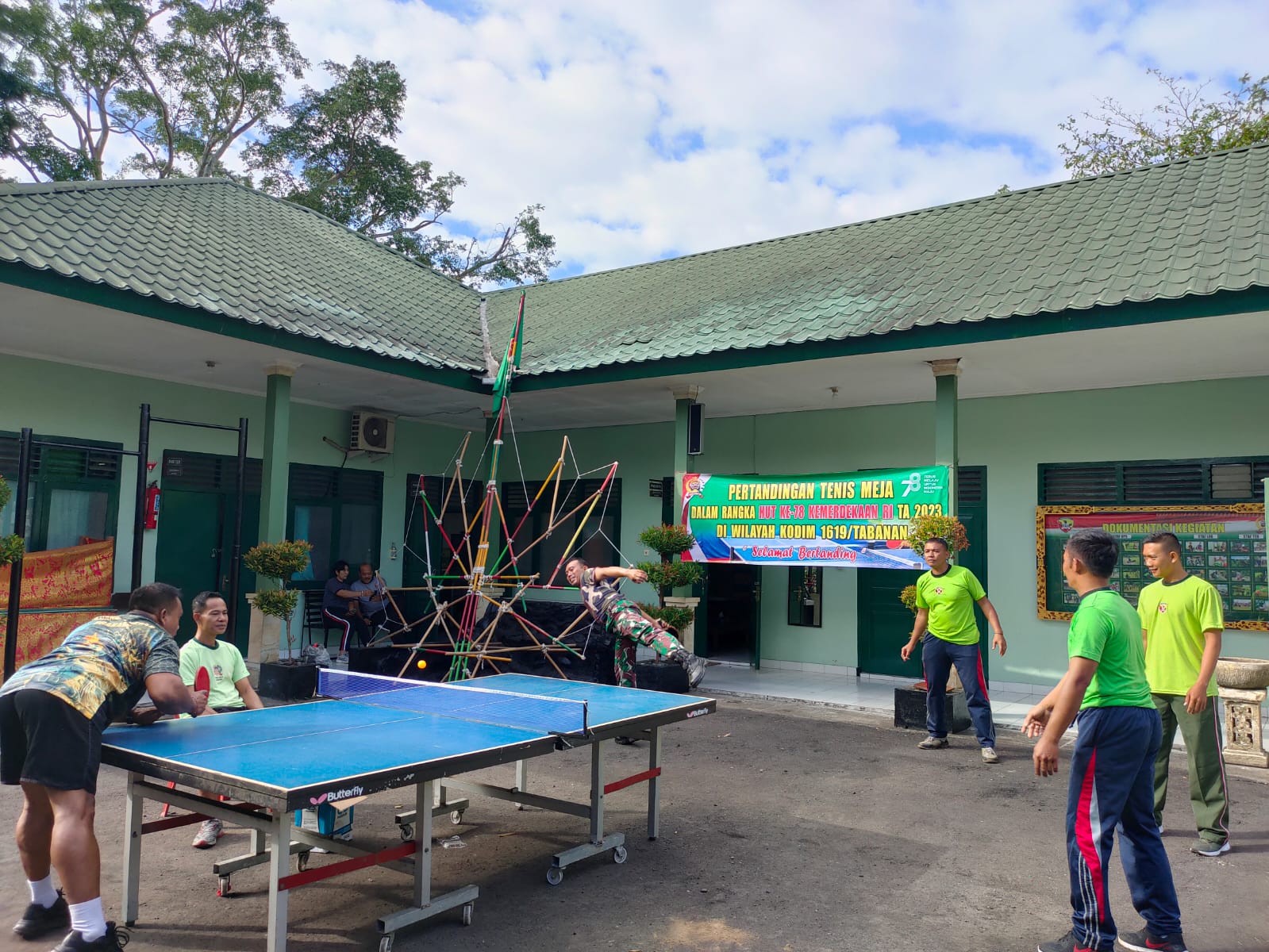 TABANAN – BUSERJATIM.COM. Tak mau melewatkan begitu saja semarak Peringatan HUT Ke-78 Kemerdekaan RI Tahun 2023, Kodim 1619/Tabanan mengadakan pertandingan tenis meja di dihalaman Makodim yang diikuti oleh seluruh Koramil jajaran termasuk personel Makodim 1619/Tabanan, Kamis (10/08/2023).