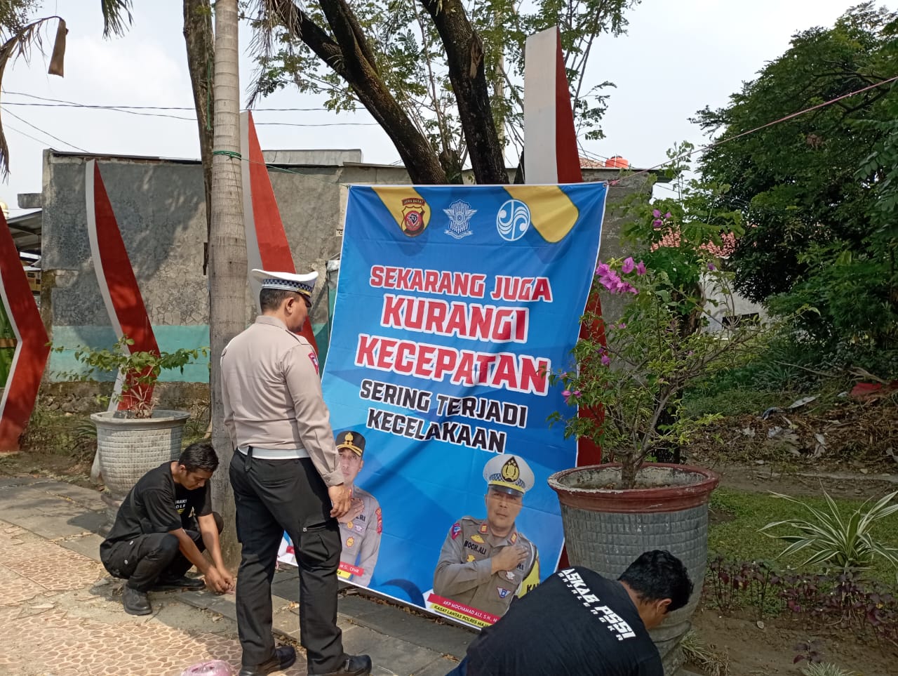Spanduk yang dipasang menampilkan informasi mengenai jadwal dan tujuan dari Operasi Patuh Lodaya 2024, yang bertujuan untuk meningkatkan disiplin berlalu lintas dan menurunkan angka kecelakaan di jalan raya.