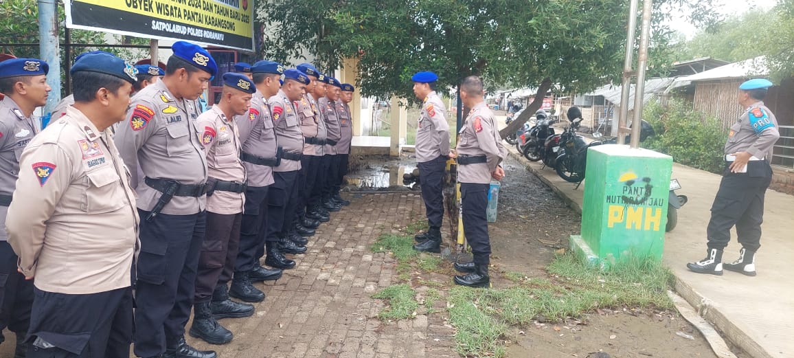 Kegiatan diawali dengan apel kesiapan pengamanan yang dipimpin oleh Kapos Pantau Objek Wisata, AKP Asep Suryana, S.E., didampingi IPTU Ahmad selaku Padal BKO, di Pos Pantau Objek Wisata Pantai Karangsong, Kecamatan/Kabupaten Indramayu.