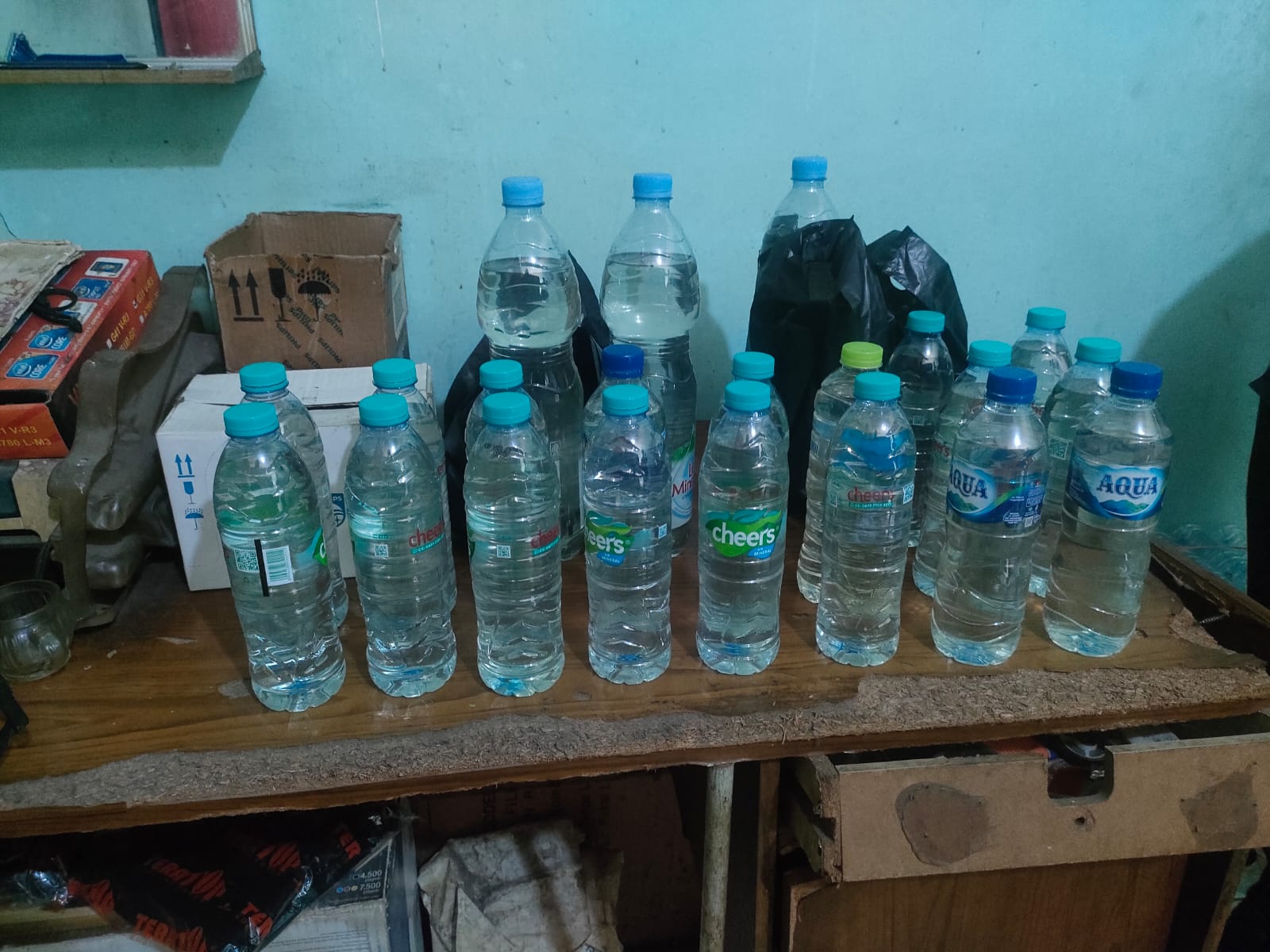 18 botol plastik kecil dengan total 12 liter