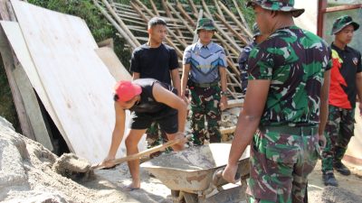 Pada pengerjaan pondasi Rumah Tidak Layak Huni (RTLH) dilakukan dengan bekerjasama antara Satgas TMMD bersama masyarakat tampak sangat kompak.