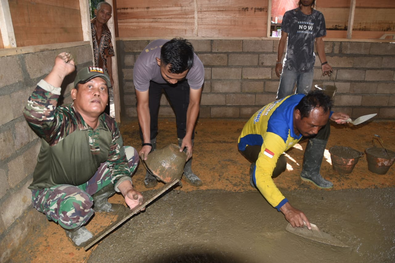 HARUYAN, HULU SUNGAI TENGAH,, BUSERJATIM. COM -Setelah berhasil memasang jendela, anggota Satuan Tugas TNI Manunggal Membangun Desa (Satgas TMMD) ke-124 Kodim 1002/HST langsung melanjutkan pekerjaan pengecoran lantai rumah tidak layak huni milik Ardiansyah di Desa Pengambau Hilir Luar. Kegiatan ini berlangsung pada Senin (26/5).
