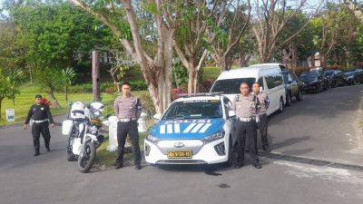 Satgas Walrolakir Ops Tribrata Agung 2023, laksanakan pengawal dan pengamanan rute yang di lalui para Deledasi/HOD negara peserta KTT AIS 2023, di BNDCC Nusadua Bali, selasa (10/10/2023).