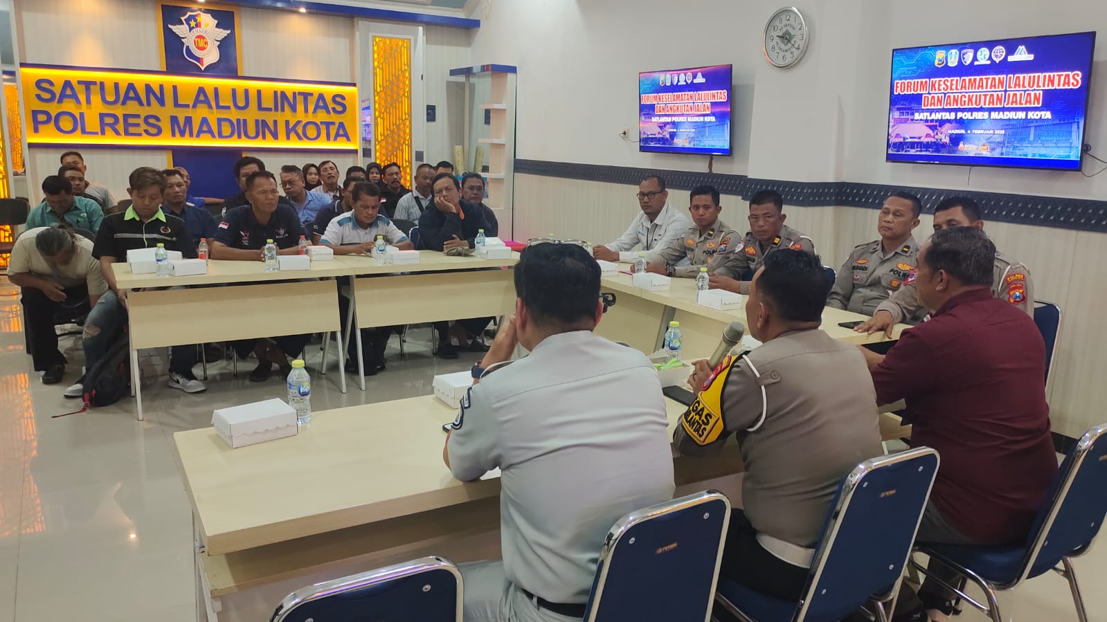 KOTA MADIUN,BUSERJATIM.COM GROUP – Demi meningkatkan keselamatan dan kelancaran lalu lintas, Satuan Lalu Lintas (Satlantas) Polres Madiun Kota menggelar kegiatan Forum Keselamatan Lalu Lintas dan Angkutan Jalan (Kesla) di TMC Satlantas.