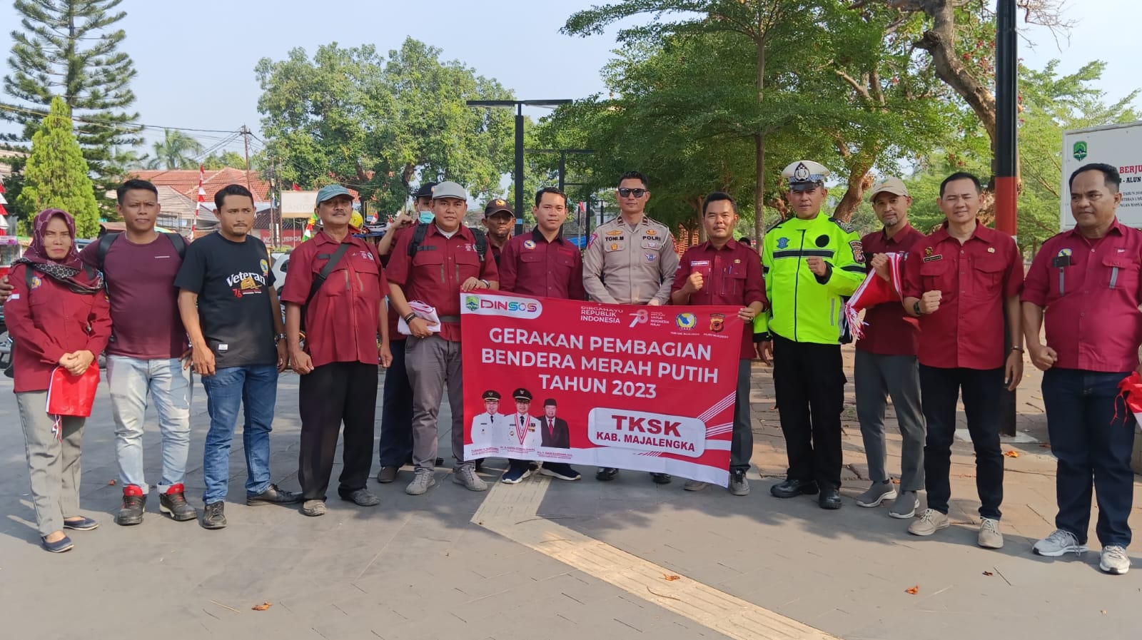 Satlantas Polres Majalengka dan TKSK Dinsos Majalengka Bagikan Bendera Merah Putih sebagai Wujud Semangat Kebangsaan