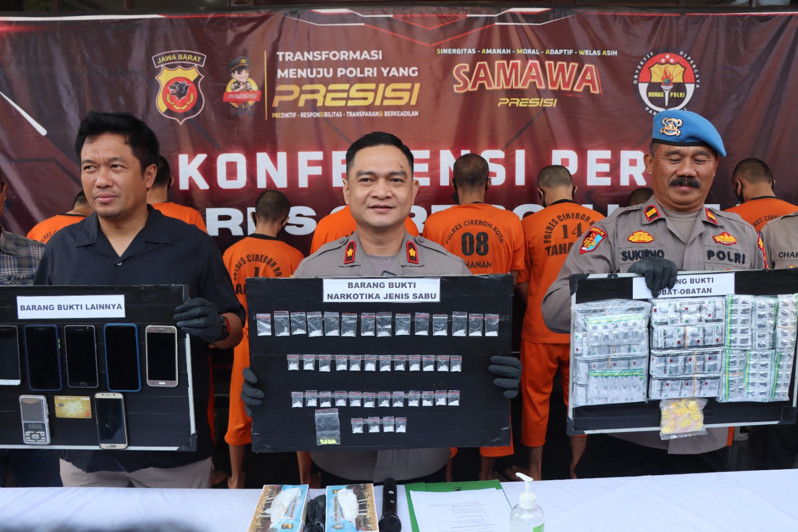 “Dari jumlah barang bukti yang diamankan ini, Satnarkoba Polres Cirebon Kota berhasil menyelamatkan sekitar 2.500 (Dua Ribu Lima Ratus) Jiwa dari penyalahgunaan narkoba,” Ujar Wakapolres