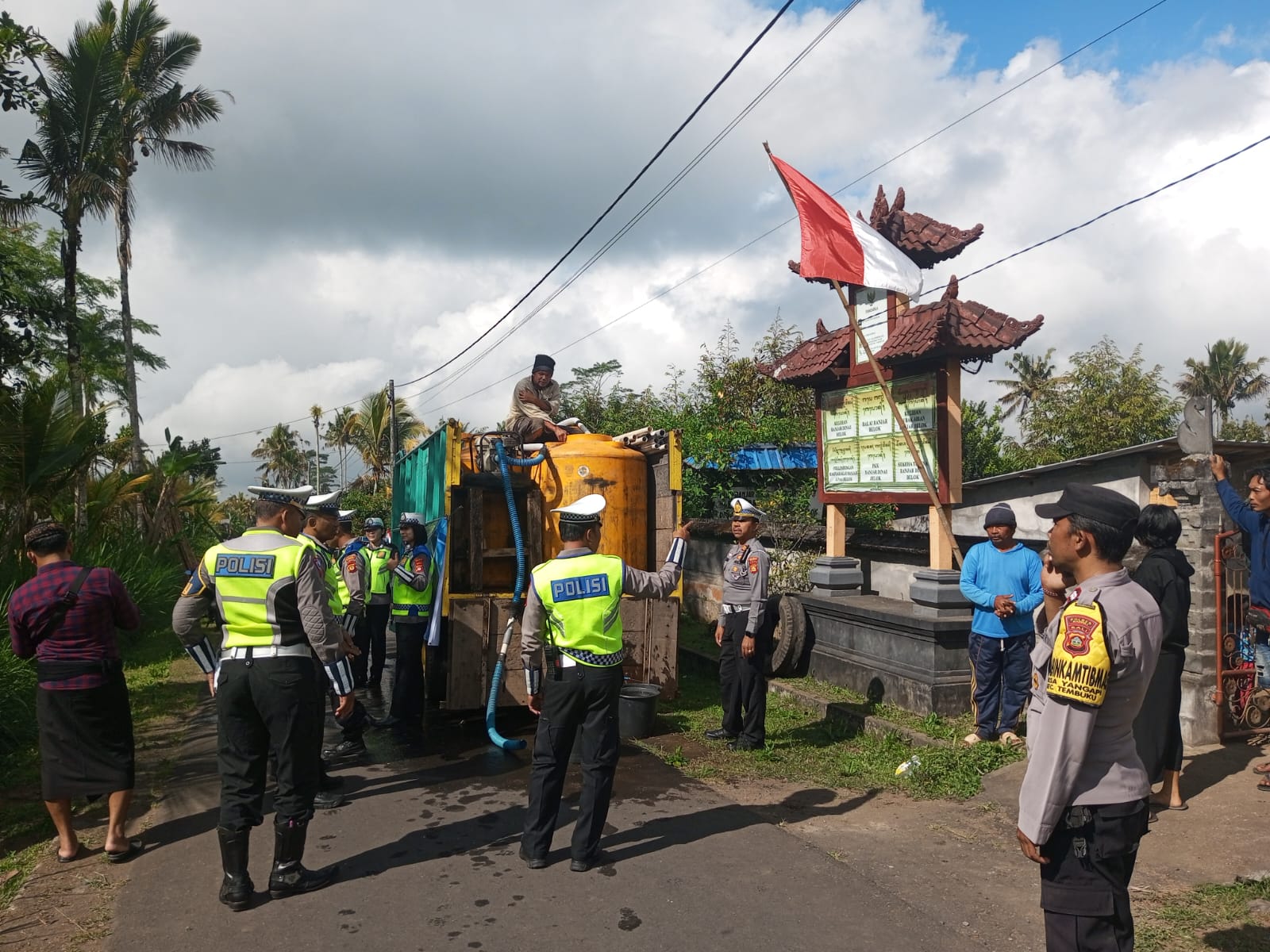 Dalam kesempatan ini, satlantas Polres Bangli memberikan sumbangan Air Bersih sebanyak 36 ribu liter kepada Warga masyarakat Dusun /Banjar Belok, Desa Yang Api Kecamatan Tembuku Kabupaten Bangli yang diterima oleh Perbekel Desa Yang Api I WAYAN EDI KORNIAVAN dan Kepala Dusun Belok I WAYAN WILANTARA bersama warga masyarakat.