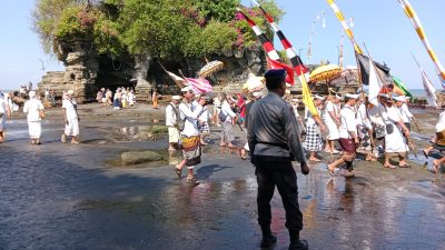Demi tetap terpeliharanya keamanan ketertiban masyarakat (harkamtibmas di kawasan pantai Tanah Lot, satuan Pol Airud Polres Tabanan melaksanakan pengamanan di sepanjang pantai Tanah lot, yang juga menjadi destinasi wisata dunia. Tampak pada hari Senin tanggal 7 Agustus 2023 pagi Satuan Pol Airud juga melakukan pengamanan upacara Melasti di kawasan pantai Tanah lot.