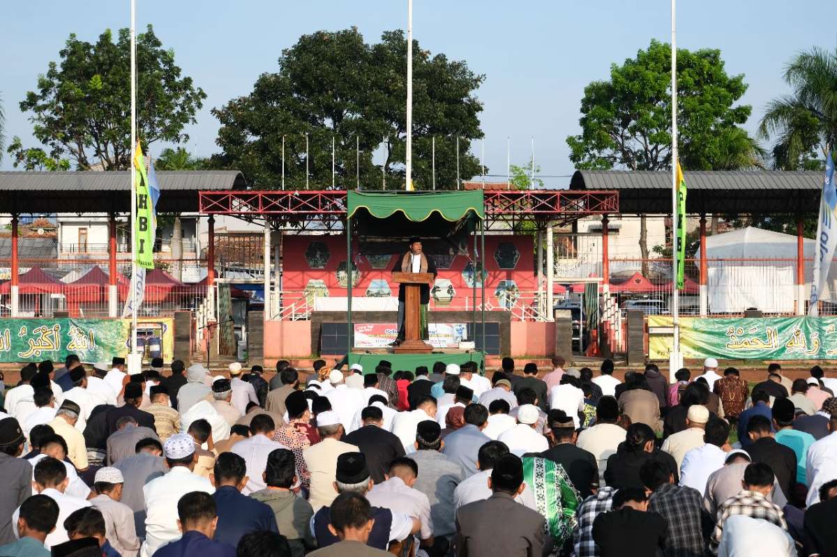 Di Lapangan SOR Merdeka Kerkhof, pelaksanaan salat ied dihadiri ribuan jemaah, dengan imam dan Khotib, Suherman – anggota Tim Percepatan Pembangunan Kabupaten Garut.