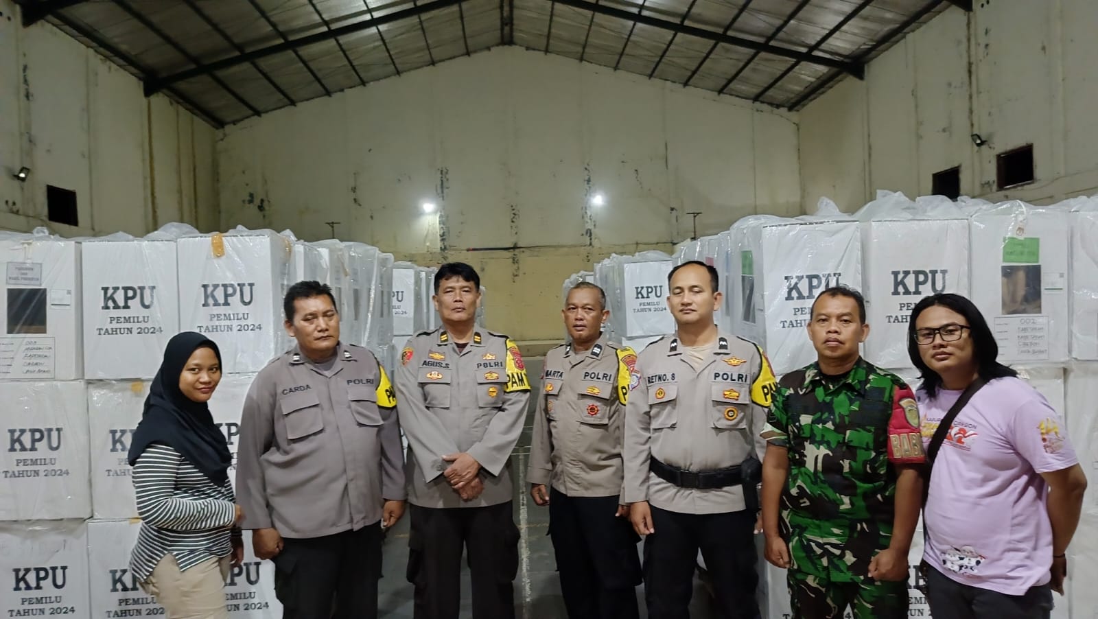 Sebar personil Polsek Kapetakan Polres Cirebon kota amankan kotak suara Pemilu 2024