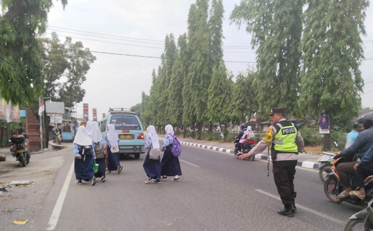 Sedangkan pelajar, personil Polsek Gunung Jati Polres Cirebon kota Saat Gatur pagi
