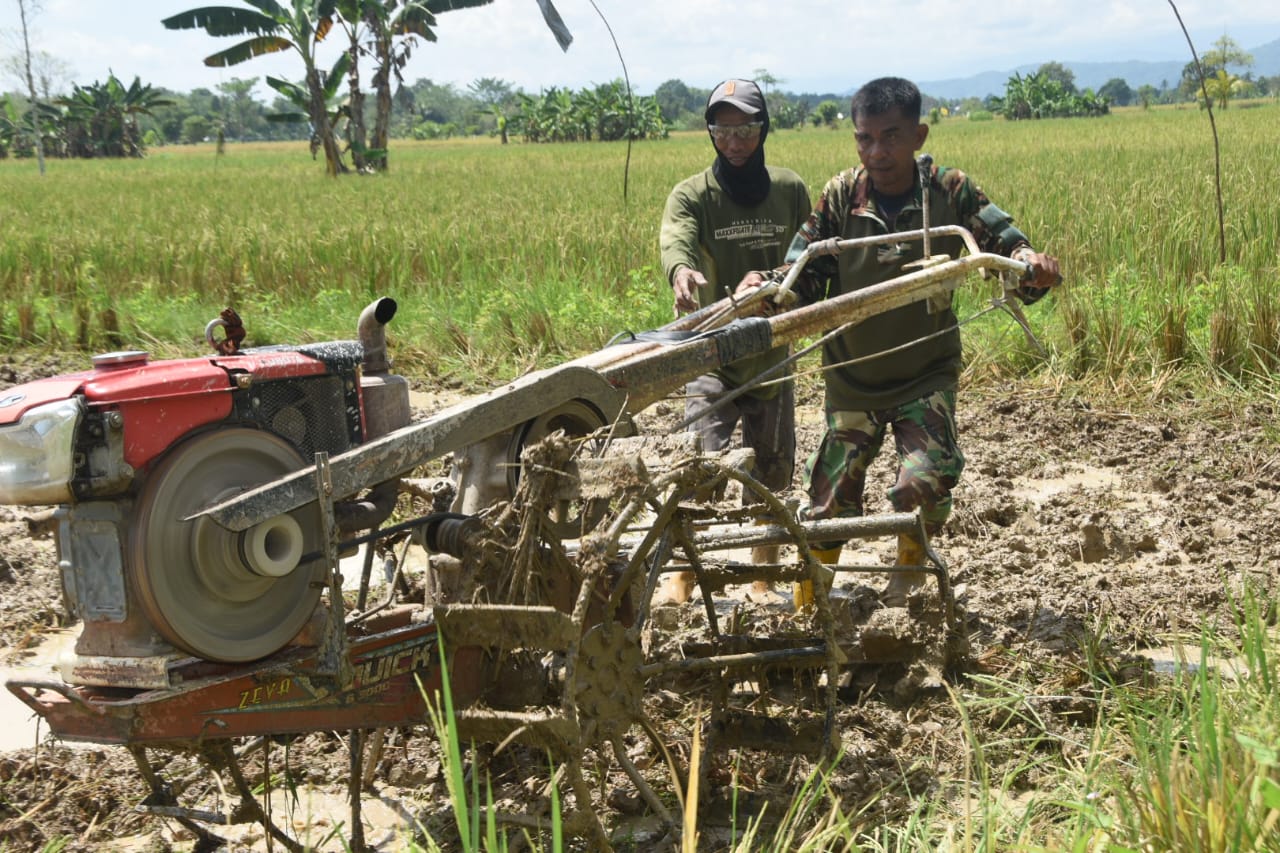 Pasiterdim 1002/HST, Kapten Inf Subhan, menyampaikan bahwa kegiatan membantu membajak sawah ini merupakan wujud kemanunggalan TNI dengan rakyat.