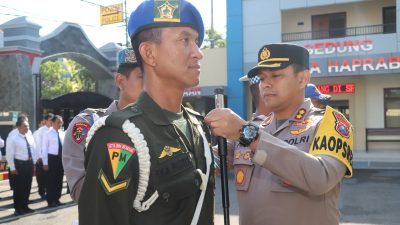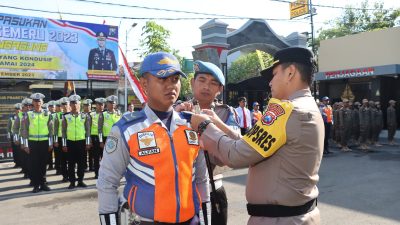 Sebelum memberikan amanat, Kapolres Tulungagung AKBP Teuku Arsya Khadafi, SH, SIK, M.Si menyematkan pita tanda operasi kepada perwakilan dari anggota Polri, TNI dan Dishub.