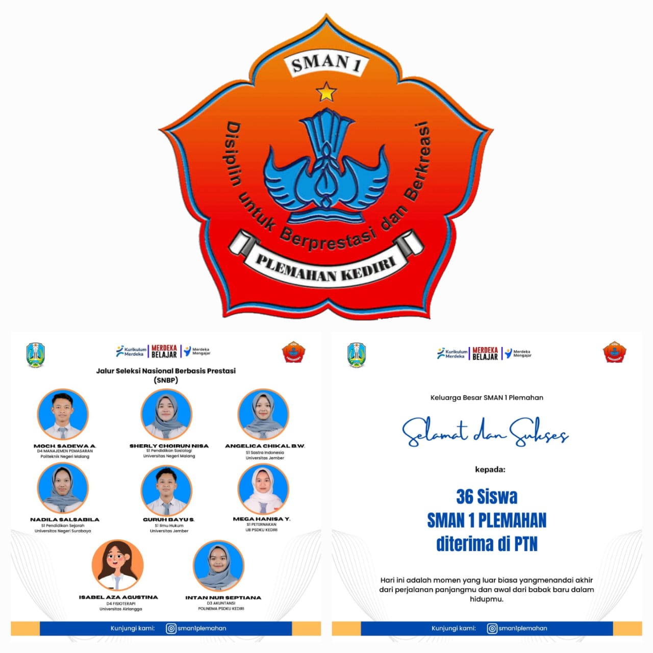“Alhamdulillah peserta didik SMAN 1 Plemahan banyak yang lolos dan diterima di PTN melalui jalur Seleksi Nasional Berdasarkan Prestasi (SNBP) Tahun 2025.” Ucapnya