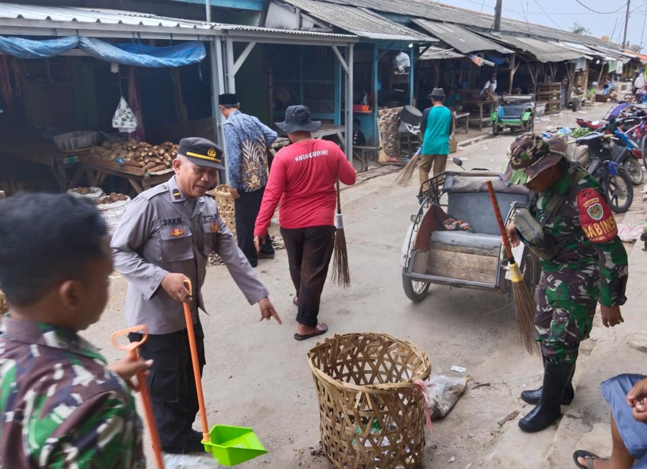 Indramayu,- Polsek Kandanghaur jajaran Polres Indramayu Polda Jabar, Koramil, dengan semangat gotong royong bersatu hati dalam sebuah kegiatan bakti sosial (baksos) yang bertujuan untuk membersihkan sampah.