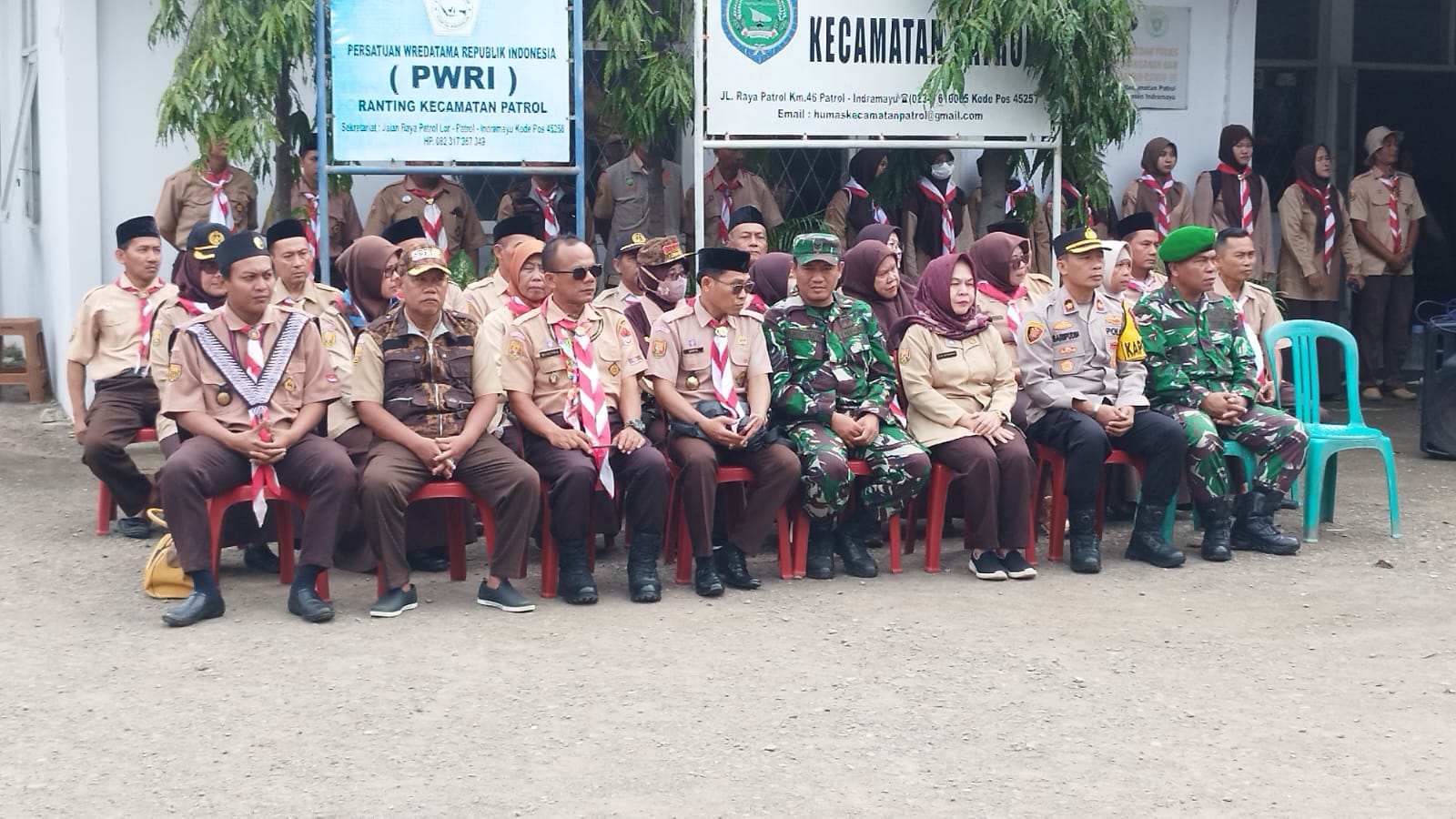 Tampak hadir jajaran Forkopimcam, di antaranya Danramil 1614 Anjatan Kapten Inf Disman, Kapolsek Patrol Kompol H. Saripudin, S.H, M.H, Kepala UPTD Puskesmas Patrol dr. Siti Rokayah, MM., para kuwu, pengurus Kwarran, serta kepala sekolah dan guru SD/MI dan SMP.