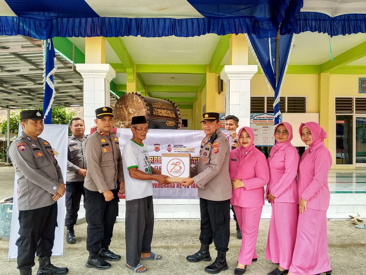 Indramayu – Dalam rangka menyambut Hari Bhayangkara ke-78, Polsek Losarang jajaran Polres Indramayu Polda Jabar turut berbagi kebahagiaan dengan melaksanakan kegiatan bakti sosial.