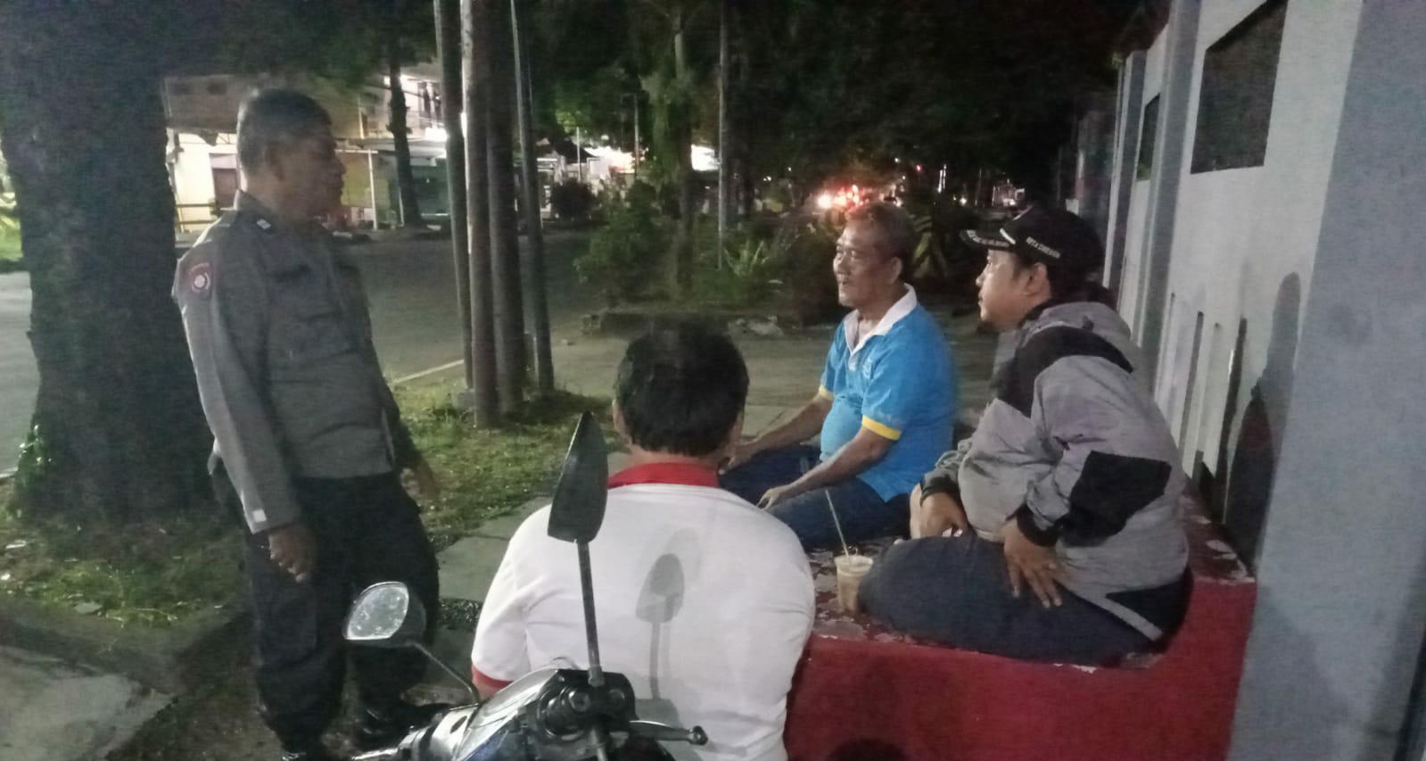 Bhabinkamtibmas Kelurahan Kesambi AIPTU Ade Wardaya , menyatu bersama warga melalui melalui patroli dialogis di RW 07 sigendeng kesambi ajak bersama-sama jaga kondusiitas lingkungan Pasca Pemilu 2024 , Sabtu malam (08/06/2024).