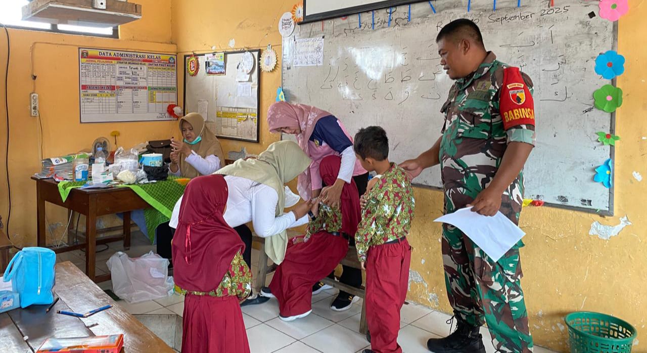 NGAWI, BUSERJATIM.COM GROUP – Peduli kesehatan pada anak, Babinsa Posramil Gerih Serka Istamar turut mendampingi pelaksanaan Bulan Imunisasi Anak (Bias) yang diselenggarakan oleh Puskesmas Gerih di SDN Gerih 1 dan 2, Rabu (10/09/2025).