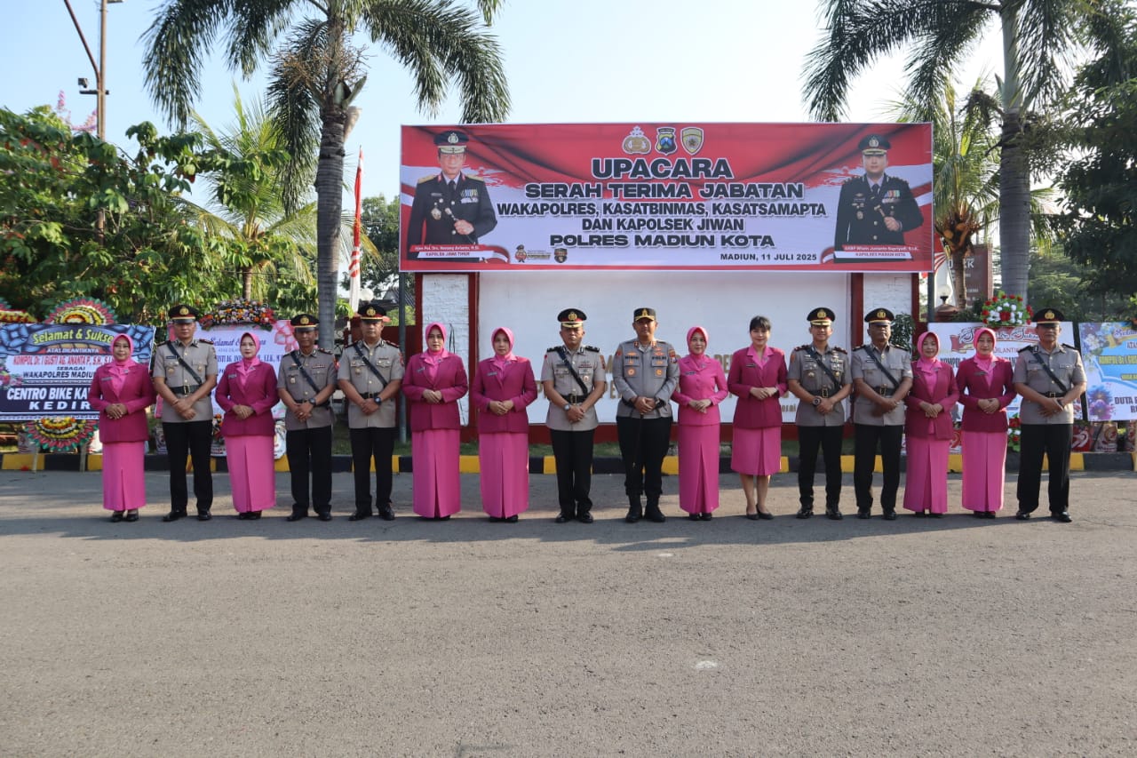 Dalam sambutannya, Kapolres Madiun Kota AKBP Wiwin Junianto Supriyadi, S.I.K. menyampaikan apresiasi dan penghargaan setinggi-tingginya kepada para pejabat lama atas dedikasi dan pengabdiannya selama bertugas di Polres Madiun Kota.