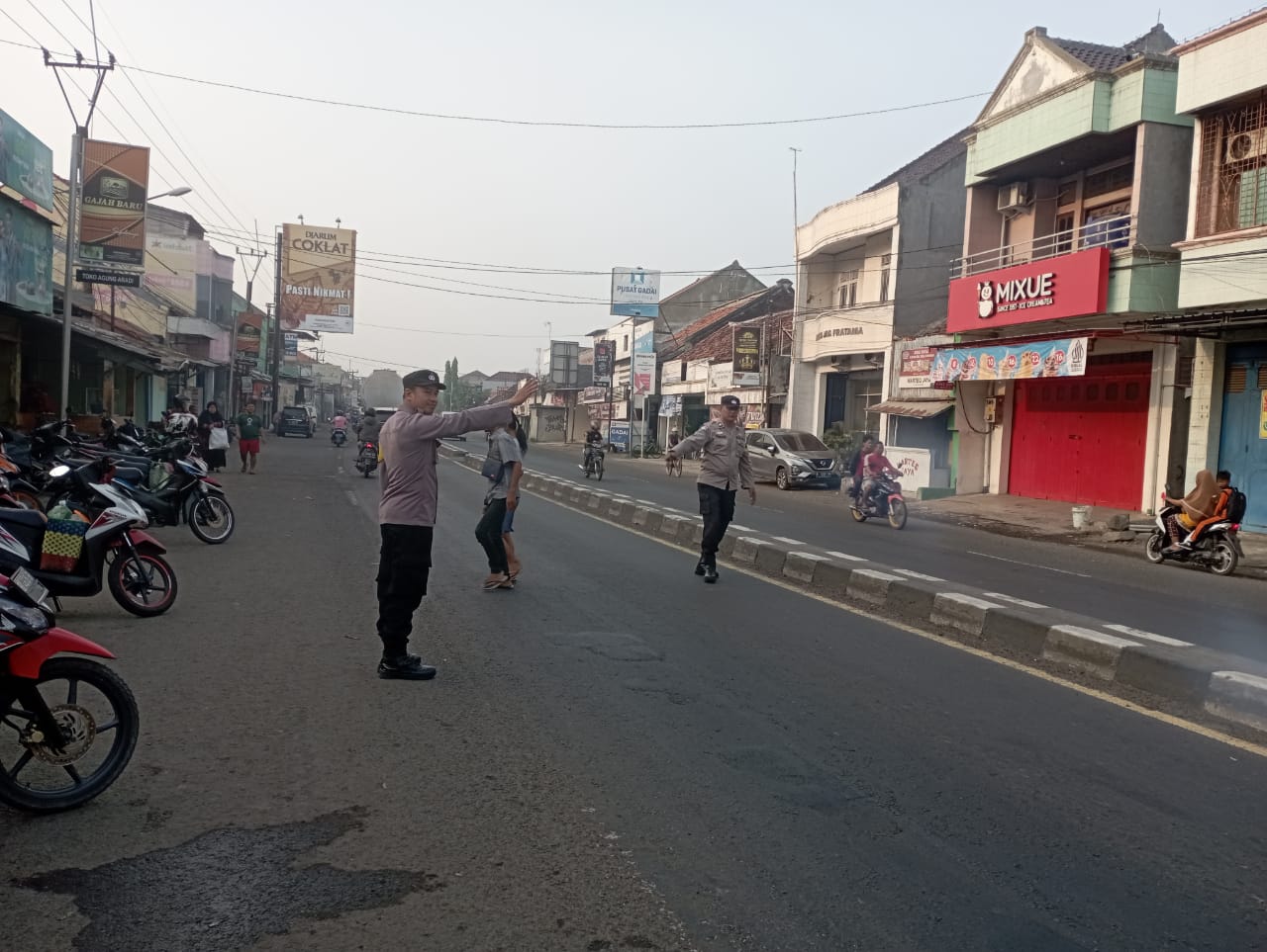 Kapolres Cirebon Kota AKBP M Rano Hadiyanto SIk MM pelaksanaan gatur upaya memberikan kamseltibcar pengendara jalan raya yang beraktivitas , dan juga para siswa bersekolah dengan menyebrang jalan