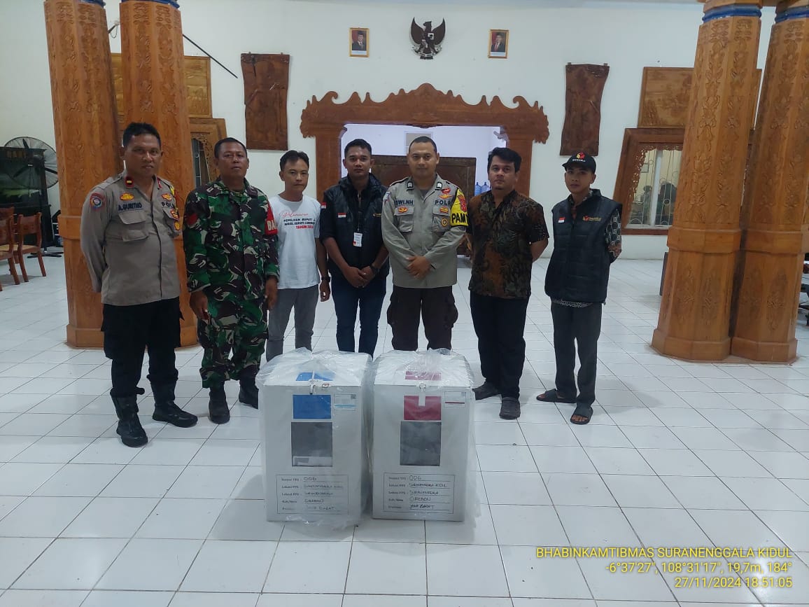 Polsek Utbar Polres Cirebon kota Polda Jabar siagakan personil monitoring pergeseran kotak suara dari TPS KE PPS , Rabu malam (27/11/2024)