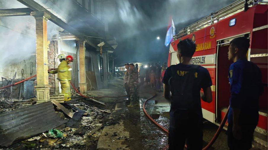 Trenggalek, Buserjatim.com – Bencana kebakaran kembali mengguncang Kabupaten Trenggalek. Rabu malam (3/9/2025), warga Desa Tangkil, Kecamatan Panggul, dikejutkan oleh kobaran api besar yang melahap bangunan toko sekaligus gudang cengkeh milik warga setempat, Rojikin. Dalam hitungan menit, suasana desa berubah mencekam dengan langit gelap yang diselimuti asap pekat membumbung tinggi.